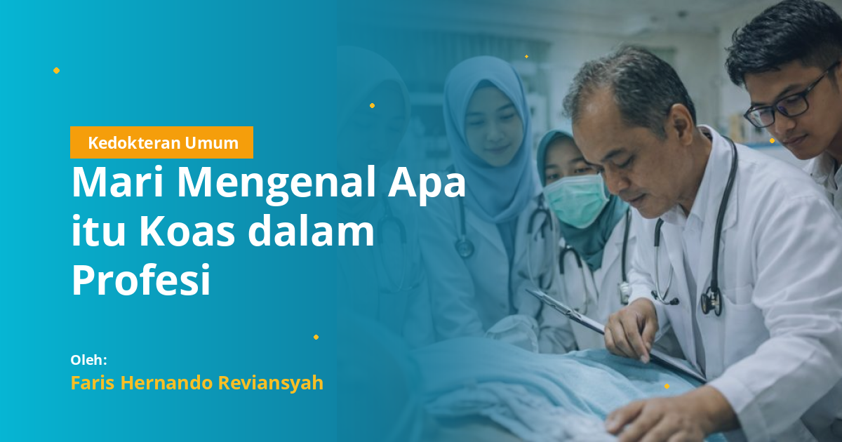 Koas, atau co-assistant, adalah tahap pendidikan klinik yang harus dijalani mahasiswa kedokteran setelah menyelesaikan pendidikan sarjana. Pada tahap ini, mahasiswa tidak lagi hanya belajar di kelas, tetapi mulai terjun langsung ke rumah sakit atau fasilitas kesehatan untuk belajar praktik medis secara nyata. Selama masa koas, mahasiswa akan berpindah-pindah bagian (rotasi), seperti rawat inap, rawat jalan, hingga unit gawat darurat. Mereka belajar dengan cara mengamati, membantu dokter, dan berinteraksi langsung dengan pasien di bawah pengawasan tenaga medis yang lebih senior. Tujuan utama koas adalah agar calon dokter memiliki pengetahuan, keterampilan, sikap profesional, dan kemampuan komunikasi yang baik sebelum benar-benar menjadi dokter. Masa koas menjadi jembatan penting dari dunia pendidikan menuju praktik medis sesungguhnya.
